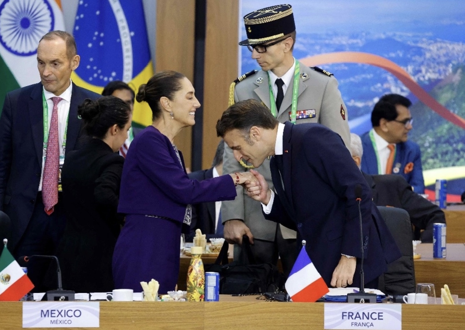 En el marco de la Cumbre del G20, la presidenta Claudia Shienbaum Pardo se ha reunido, hasta ahora, con su par de Francia, Emmanuel Macrón. En redes sociales, el gobierno de México indicó que acordaron cooperar en temas de agua, salud e infraestructura, así como impulsar juntos la igualad de género.